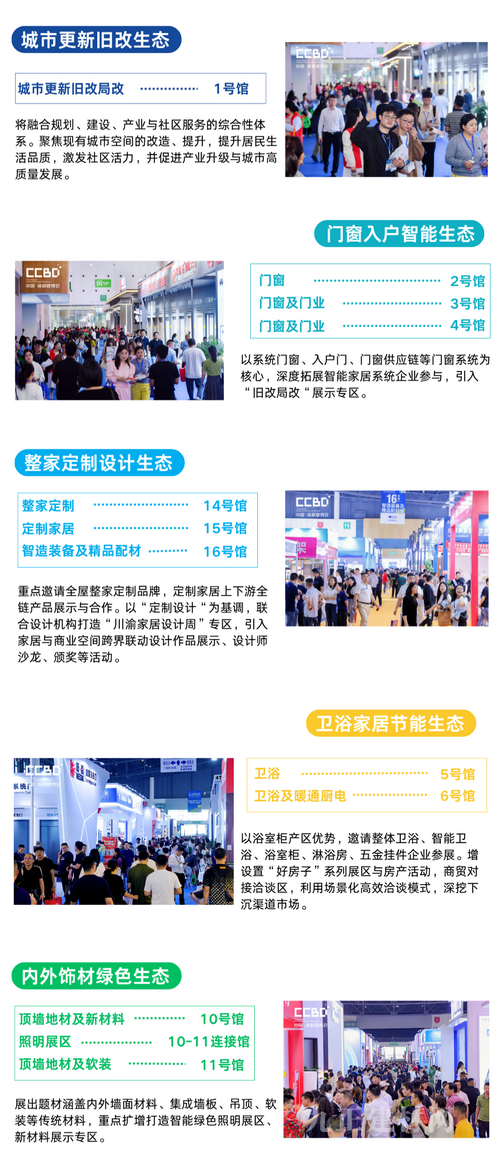 为精准对应建材家居产业融合发展趋势,2026中国成都建博会对展区规划进行了系统性重构,打破传统产品分类界限,创新性地规划了城市更新旧改、门窗入户智能、整家定制设计、卫浴家居节能、内外饰材绿色五大主题生态展区。